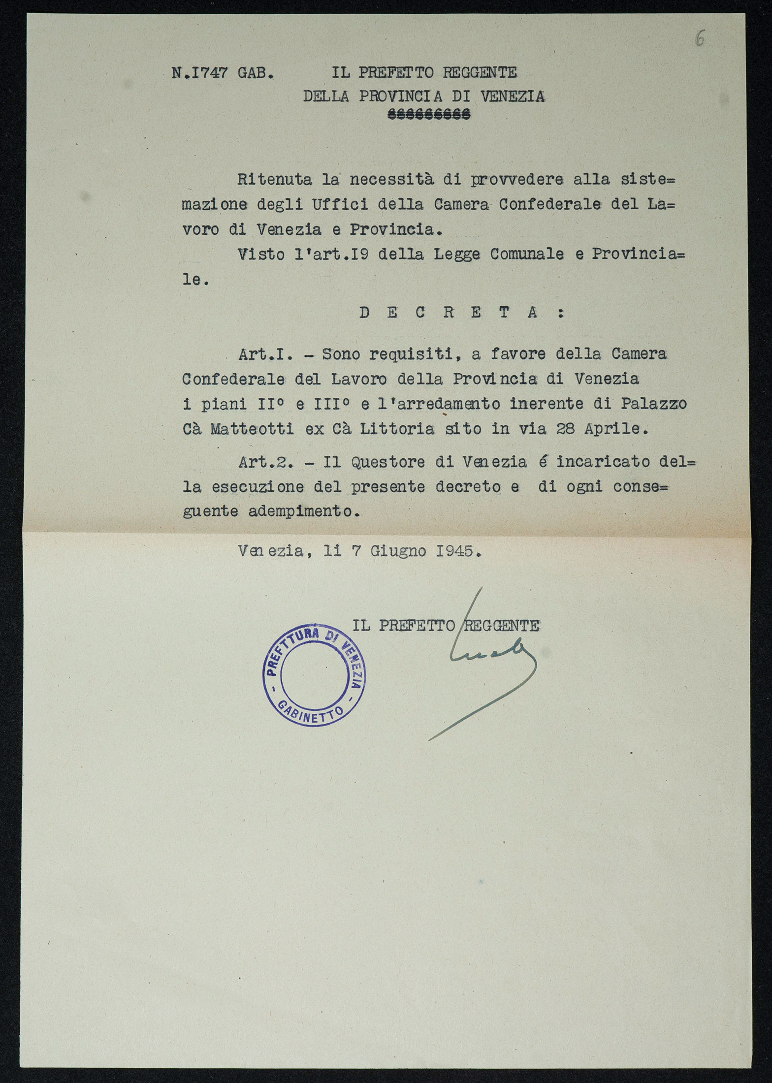 4.2 Il riutilizzo delle sedi fasciste per le istituzioni democratiche: Ca’ Littoria